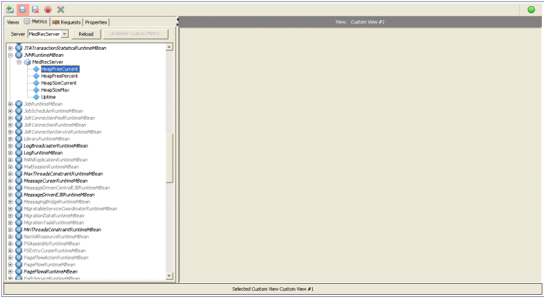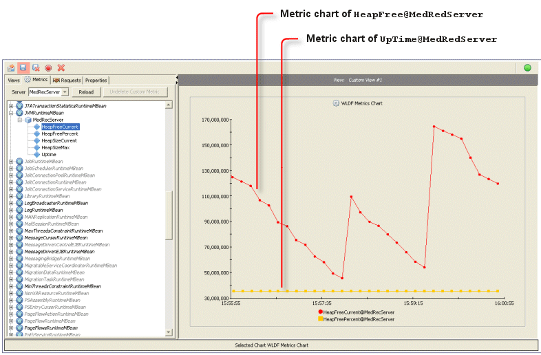 Metrics charts contain one or more graphs that real-time and harvested MBean metric information.