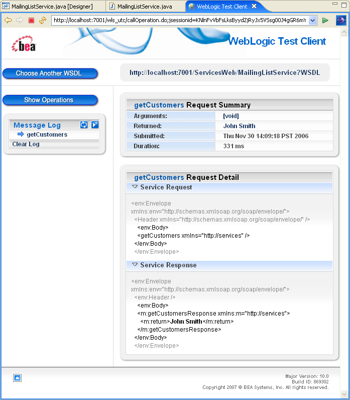 - Click the getCustomers button now to invoke the getCustomers