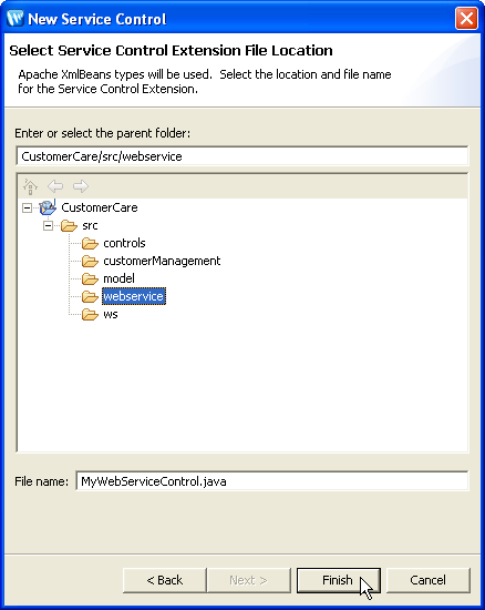 In the File name field, enter the desired name of the service control. The default name is the name of the WSDL appended with "Control".