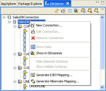 In DbXplorer, right-click the database connection SalesDBConnection and select Show in DbXaminer