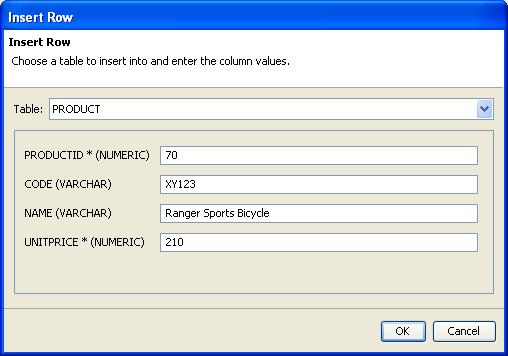 Click OK to insert the row into the PRODUCT table. Workshop validates the data prior submission to ensure that it conforms to the column definitions (type, size, etc.).