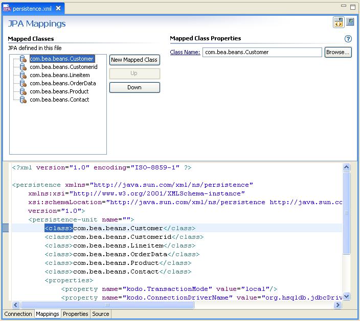 To edit JPA entity beans using the Mappings tab select a mapped class from