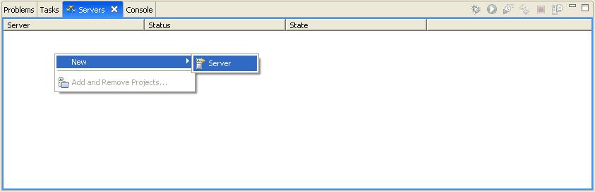Click on the Servers tab. If the Servers view tab is not displayed, click Window > Open Perspective > Workshop to display it (or click Window > Show Views > Other then expand Server, click on Servers and click OK).