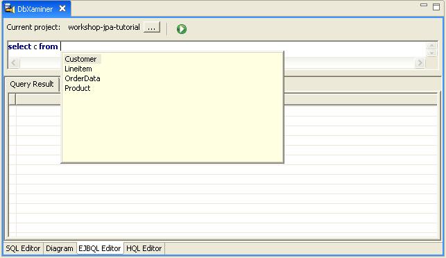 by pressing CTRL+SPACE. Here, we will define an EJBQL SELECT