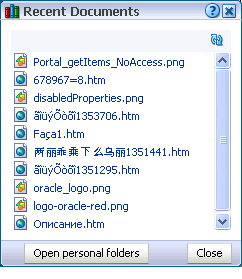 The last documents you accessed, created, or interacted with in some way Click a document link to open the document. For more information about the Document Library, see Chapter 18, "Working with the Documents Service." |