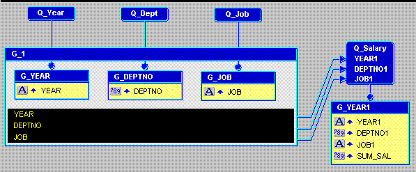 3. Repeat steps 1 and 2, but this time drag the link between the DEPTNO column in G_DEPTNO and DEPTNO1 in G_YEAR1.