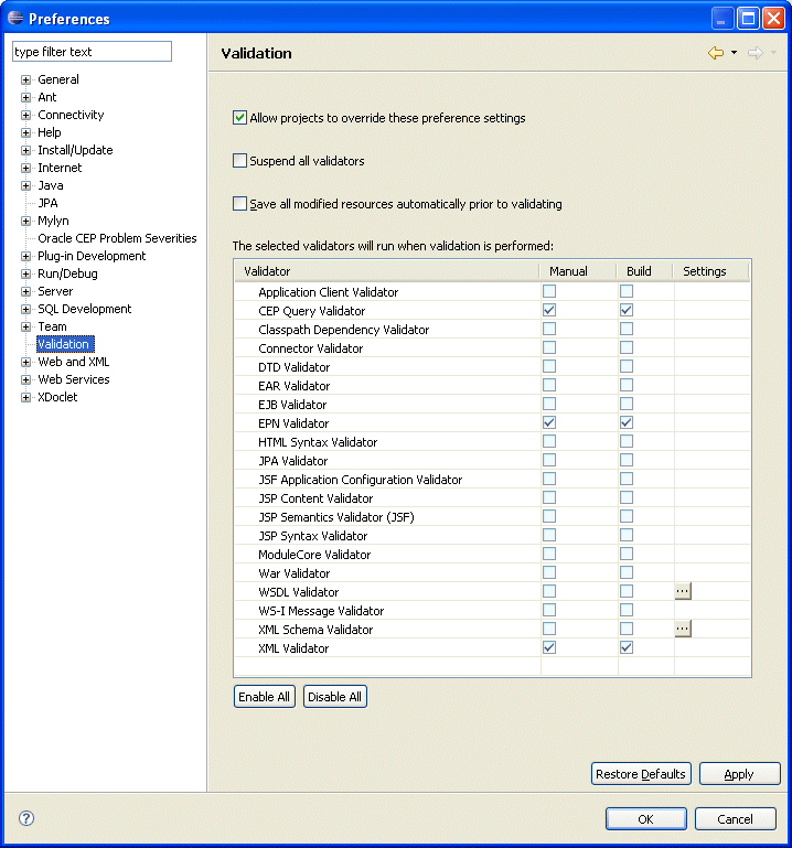You can configure various preferences to customize Oracle CEP IDE for Eclipse to suit your needs, including: