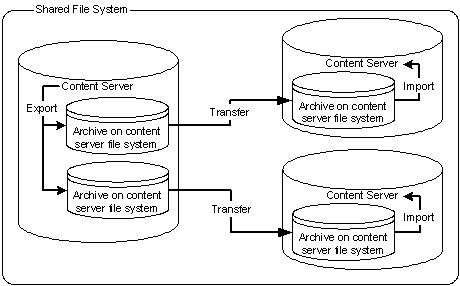 Replicate: Used to automate the export, import, and transfer functions. For example, you can use replication to automatically export from one Oracle Content Server instance, transfer the archive to another computer, and import to another Oracle Content Server instance.