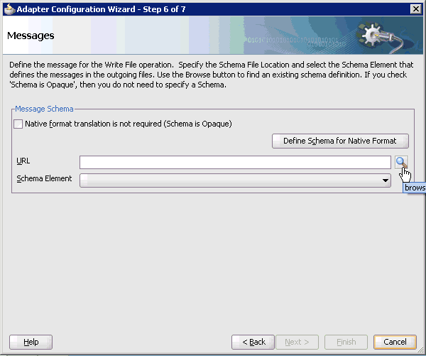 Click the Browse Input Elements icon, which is located to the right of the Input field to select the associated XML request schema file.