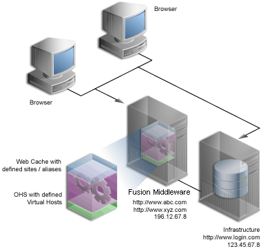 Oracle Portal leverages Oracle Web Cache to cache a lot of its content. When cached content in Oracle Web Cache changes, Oracle Portal sends invalidation messages from the database to Oracle Web Cache. Oracle Portal can only send invalidation messages to one Web Cache node in an Oracle Web Cache cluster. Oracle Portal relies on that Oracle Web Cache member to invalidate content in the other members of the cluster. When Oracle Fusion Middleware is front-ended by an LBR, the LBR must be configured to accept invalidation requests from the database and balance the load among the cluster members. Depending on how your routing is set up you may also need to set up NAT and open the appropriate outbound ports on your data tier. The required steps for setting this up are discussed later.