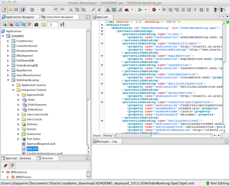 Expand the SOAOrderBooking project and double-click composite.xml.