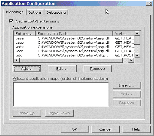 In the Executable box, type the full path or browse to the iisproxy.dll that processes the request. For example, type systemroot\system32\inetsrv\iisproxy.dll.