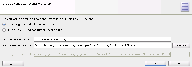 Select Create a new conductor scenario file and modify the file name and where the file is stored if necessary. Note that the scenario name's extension (.scenarios_diagram) cannot be changed.