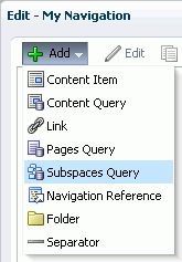 In the Edit - BankingNav dialog, click the Add menu and choose Subspaces Query.