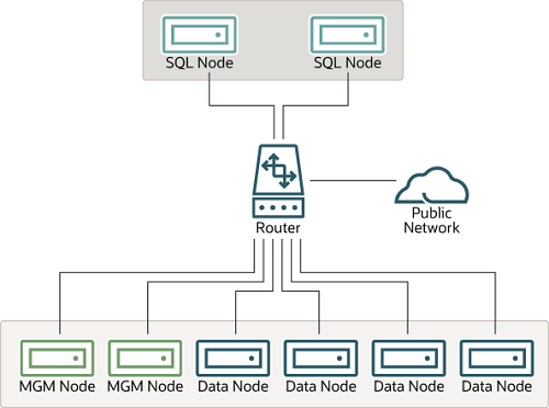 We show an example of an NDB Cluster setup using such a physically segregated network here: