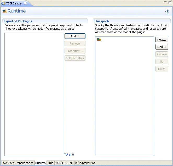 Figure 4-44 Manifest Editor Runtime tab After Exporting a Package