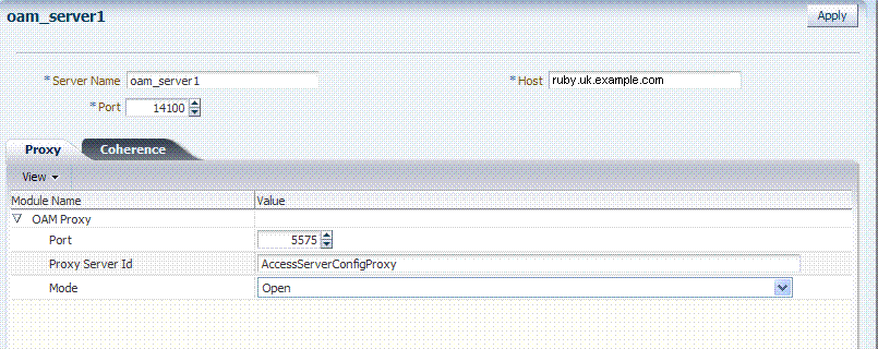 Table 5-3 OAM Proxy Settings for an Individual OAM Server