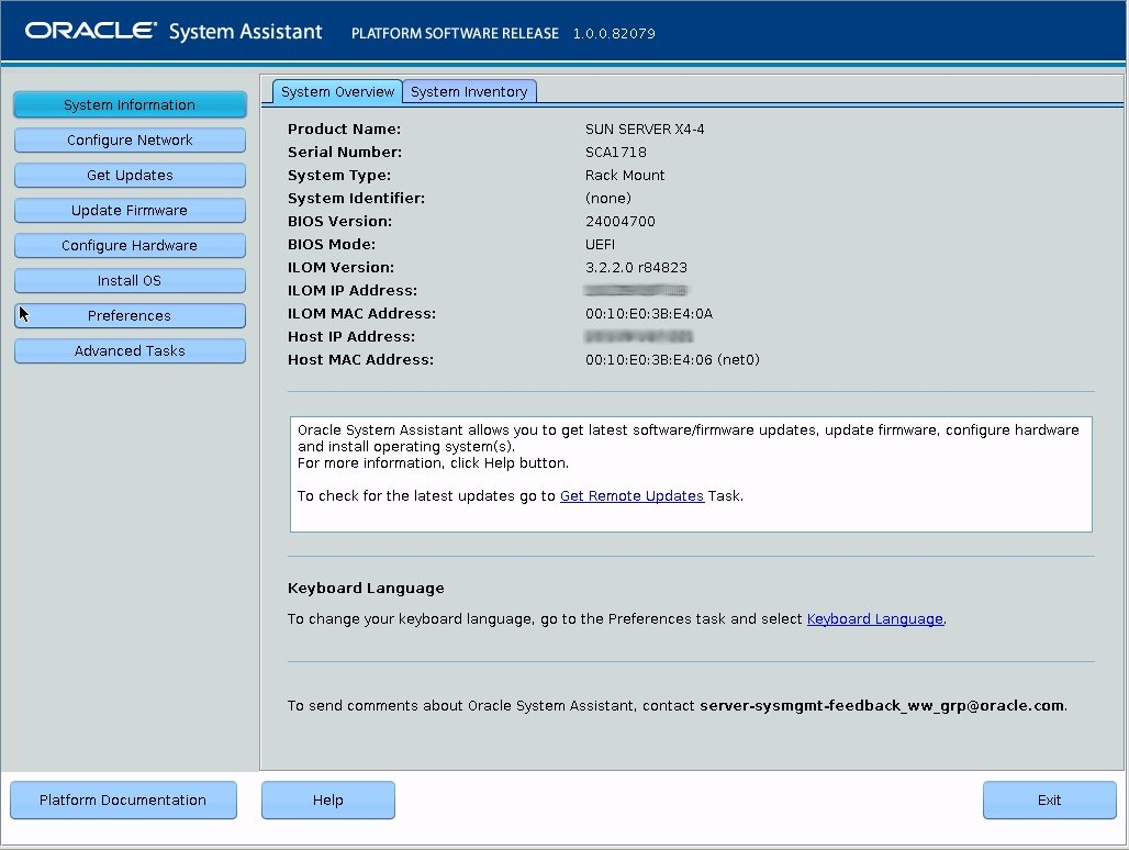 Note -  It might take a while for Oracle System Assistant to boot, especially, if you are accessing the server remotely.