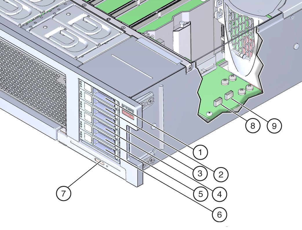 The six fan module slots are at the front of the server and are set in two rows of three slots. The slots are designated from left to right. As pictured in the illustration below, the three front row slots are designated as: FM0, FM1, and FM2. The three back row slots are: FM3, FM4, and FM5.
