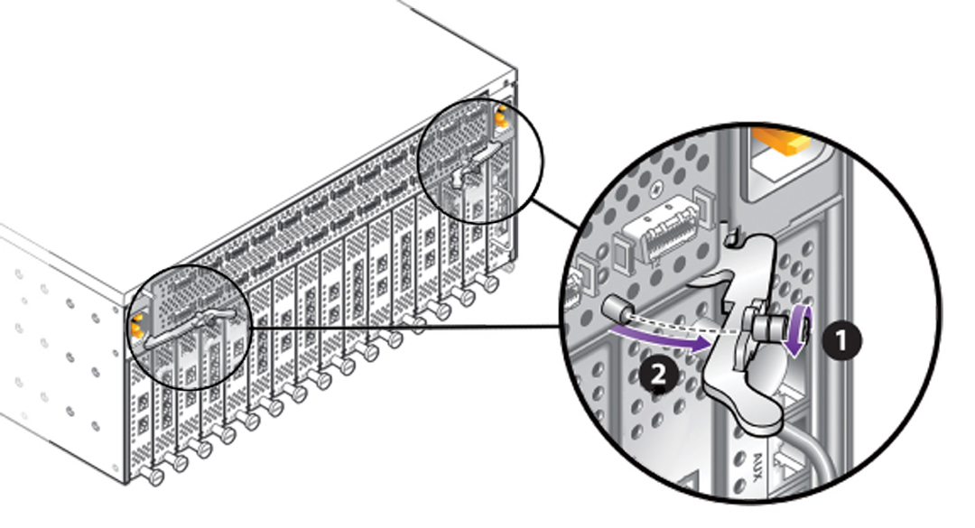 turning them counterclockwise (1) as shown in Unlocking the DDR Fabric Board from a Fabric Interconnect F1-15.