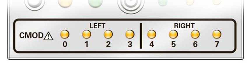 The fault indicators for the CMODs are located on the front indicator module (FIM). They are arranged like the CMODs themselves in ascending order from left to right. They light if the corresponding CMOD (0 through 7) is in a fault state.