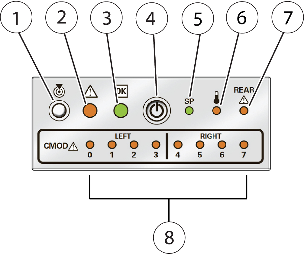 The following figure shows the Sun Server X4-8 front panel and describes its