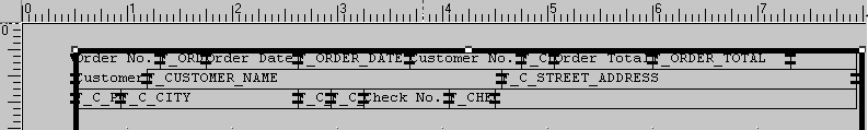 When you copy and paste a field, Reports Builder maintains the size of the field. So, when you copy and paste F_ORDER_DATE, you may not see the full name of the field. While the field is selected, you can click and drag the right border of the field to the right so that you can see the full name of the field, F_ORDER_DATE1.