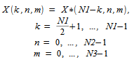 With the forward transform, if the input is one or more complex sequences of size N1, the result will be one or more complex sequences, each consisting of N1 unrelated data points. However, if the input is one or more real sequences, each containing N1 real data points, the result will be one or more complex sequences that are conjugate symmetric. That is: