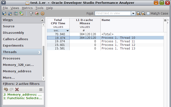 As you can see in the preceding screen shot, only one thread has cache misses for that address.