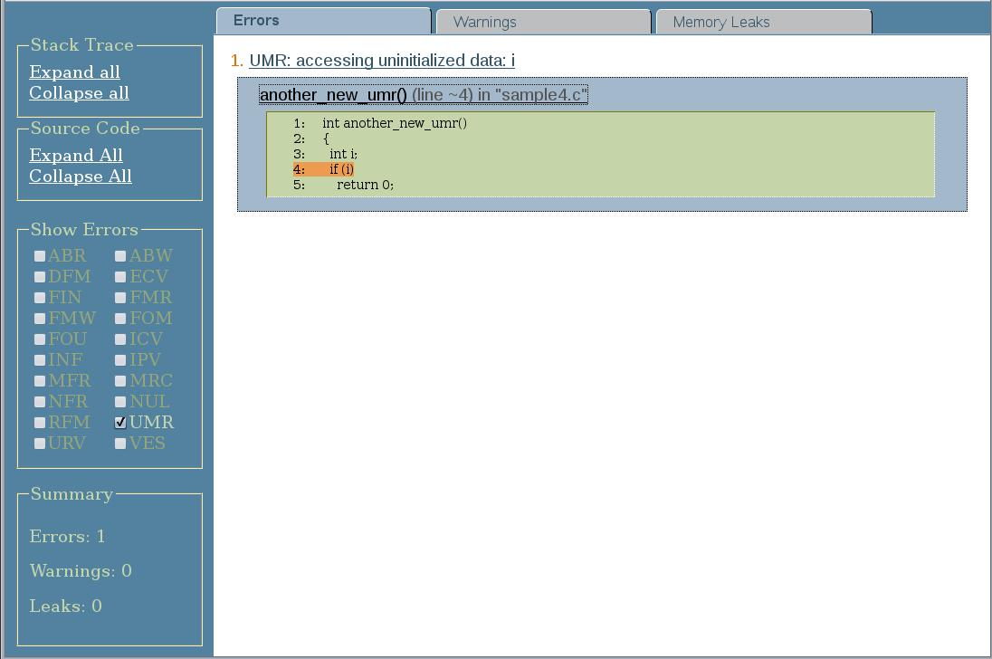 ERROR 1 (UMR): accessing uninitialized data: i at:
