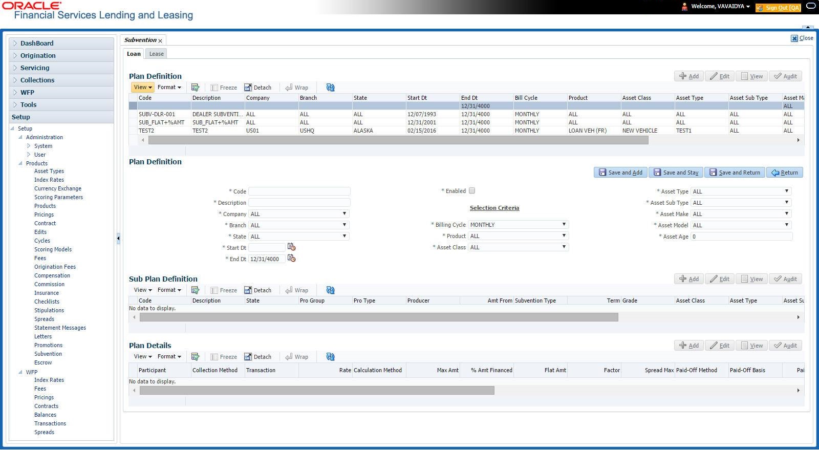 Under the Setup master tab’s drop-down link bar, the product Setup link opens screens that enable you to configure the basic business guidelines necessary to support one or more products in the system. This includes defining the types of collateral your company supports, creating lending instruments, and determining what is included in credit bureau reporting. Setting up the Products screens requires a thorough understanding of the current rules of your business and must be completed before you can use Oracle Financial Services Lending and Leasing. The Products drop-down link opens screens to record data of all the products supported by the system and contains the following links: