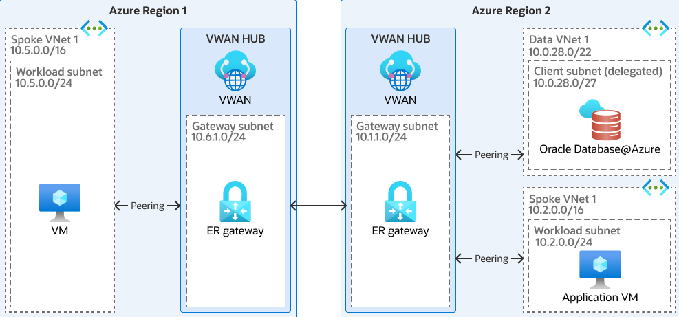 - Performance Optimization: Optimize application performance by connecting on-premises networks to the nearest hub VNet for efficient access to Oracle AI Database@Azure.