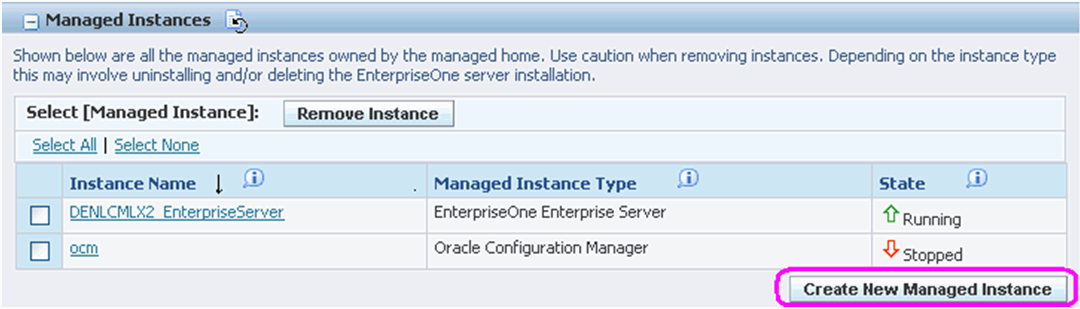 On Create/Register a Managed Instance, Finish, click the Create Instance button to complete the installation of the EnterpriseOne Data Access Server.