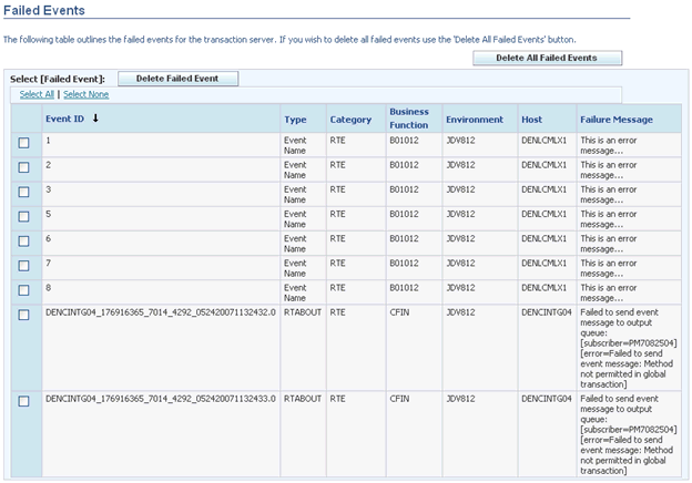 Server Manager GuideSelect [Failed Events]Select [Failed Events] Failed Events and their associated failure messages are listed for the transaction server.