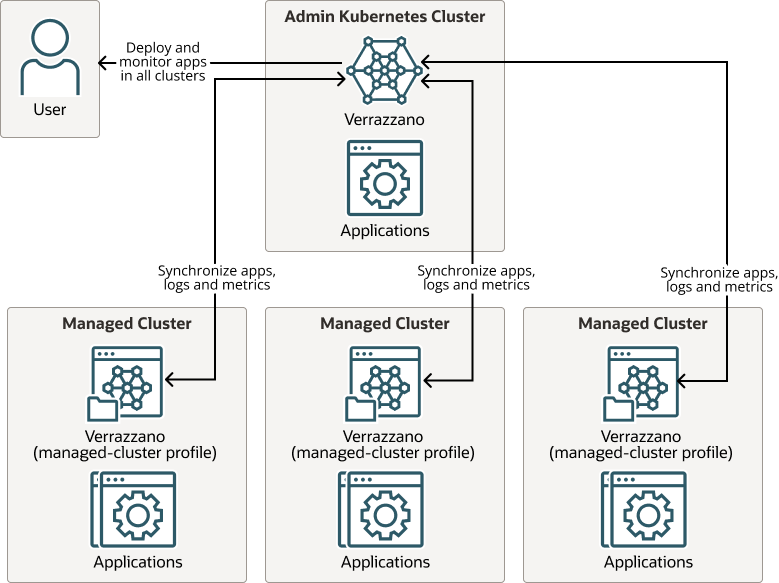 - Verrazzano multicluster applications may be deployed to the managed cluster from the admin cluster.