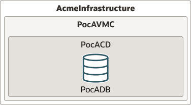 One Autonomous Exadata VM Cluster (AVMC) within AcmeInfrastructure. This AVMC is named PocAVMC.