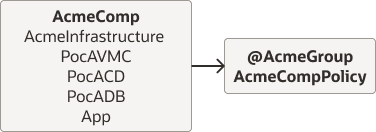 One policy called AcmeCompPolicy to specify user access to the resources at the compartment and tenancy levels.