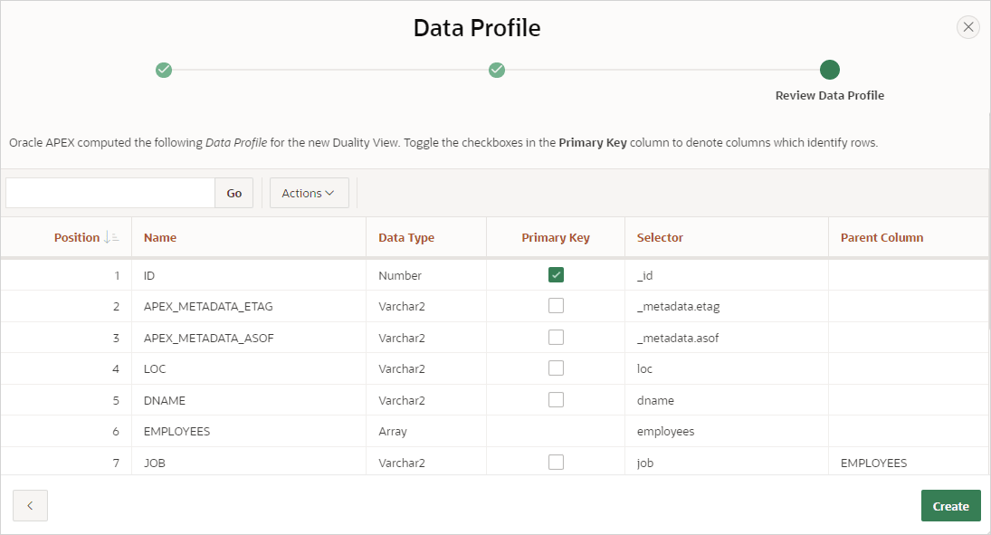 Learn about Duality Views in Oracle APEX. - Creating a Duality View Source