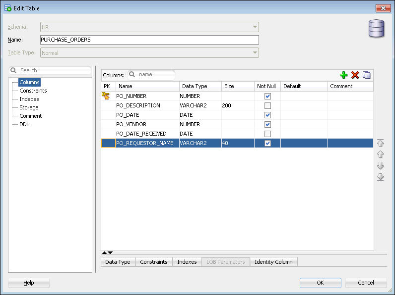 To create a LOB column using SQL Developer, click the Advanced checkbox when creating a table. Then click LOB Parameters to see the options available when creating a LOB column. For details about creating LOB columns, see Oracle Database SQL Language Reference.