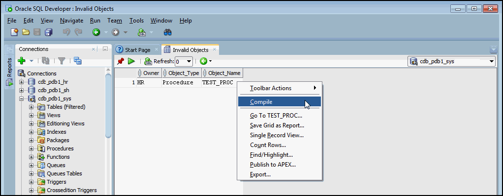 Oracle Database Administrator’s Guide for more information about object invalidation