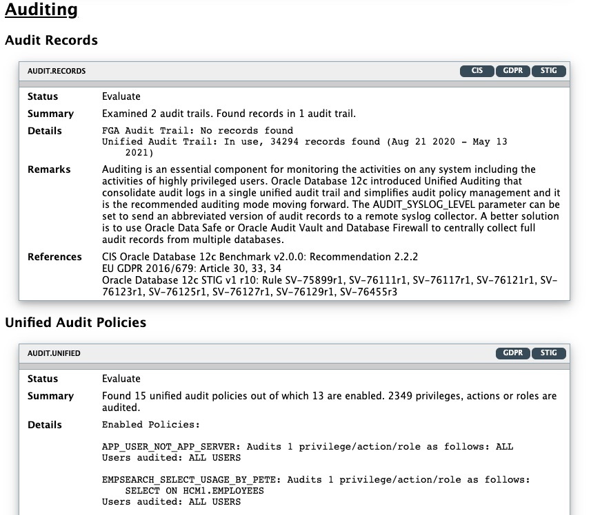 Reduce risk exposure using proven Oracle Database Security best practices, CIS benchmark recommendations and STIG rules.