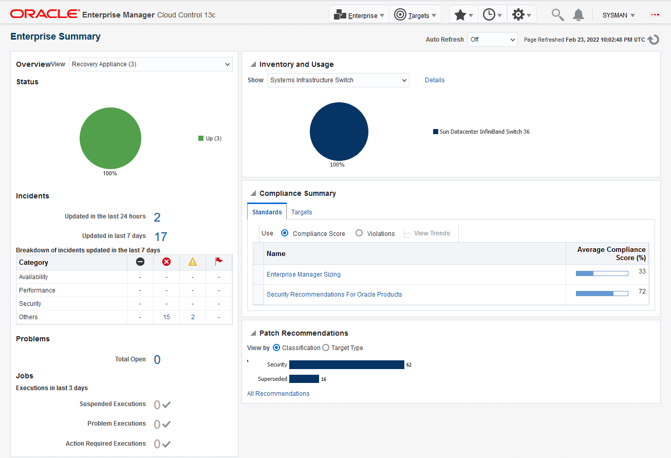 SYSMANuser name and password.The Welcome to Enterprise Manager Cloud Control page appears.