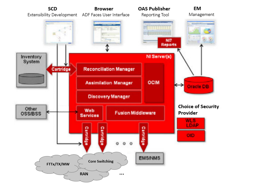Oracle recommends that you use Oracle Internet Directory for identity management (for example, users, roles, certificates). You can also use an external LDAP, which you must integrate with Network Integrity through the WebLogic Application Server.