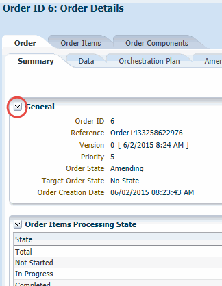 Type 1: The name of this type of area has an arrow before its name. For example, the Order tab, Summary subtab in the Order Details page includes a number of this type of areas. You can collapse some of them to make it possible to see others without scrolling.