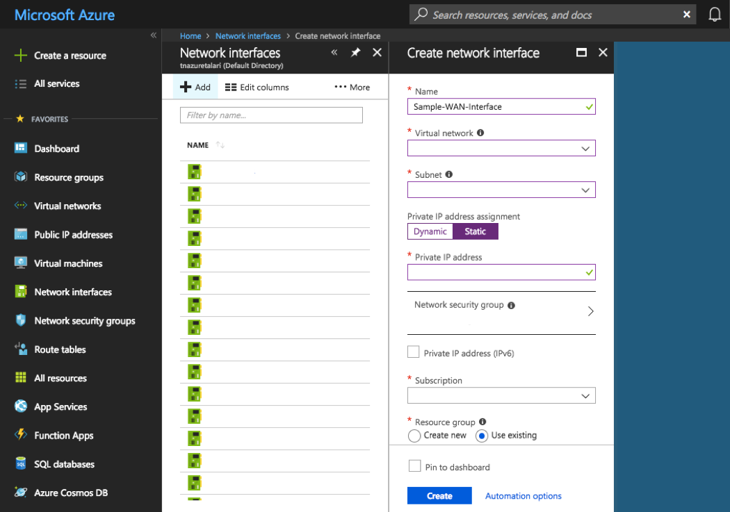 - Select “Network Interfaces” from “All Services” in the Azure Portal Menu.
