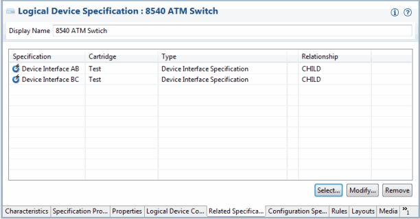 One of the most important parts of designing a specification is defining relationships to other specifications. For example, if you design a Logical Device specification, you can build in a relationship to a Device Interface specification that ensures that a particular number of interfaces are created automatically when you create a logical device in UIM.