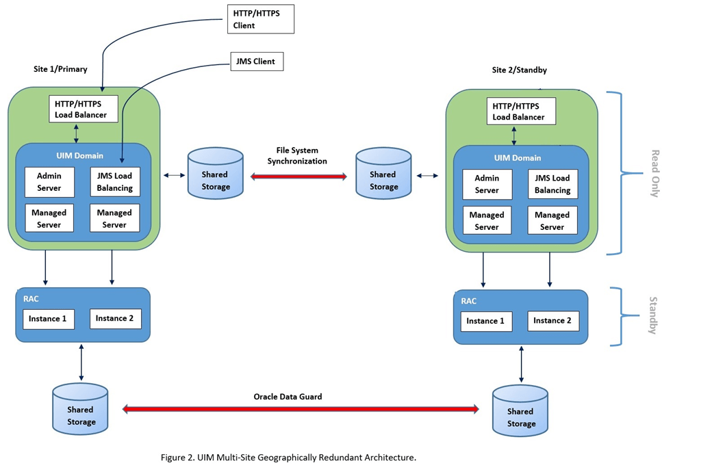 Additional resiliency is achieved when UIM is deployed to geographically redundant sites in a symmetric primary-standby configuration, where the standby site is a duplicate of the primary site. When the primary site becomes unavailable and cannot be recovered within a reasonable amount of time or with a reasonable amount of effort, UIM services can fail over to the standby site, effectively making the standby site the new primary site.