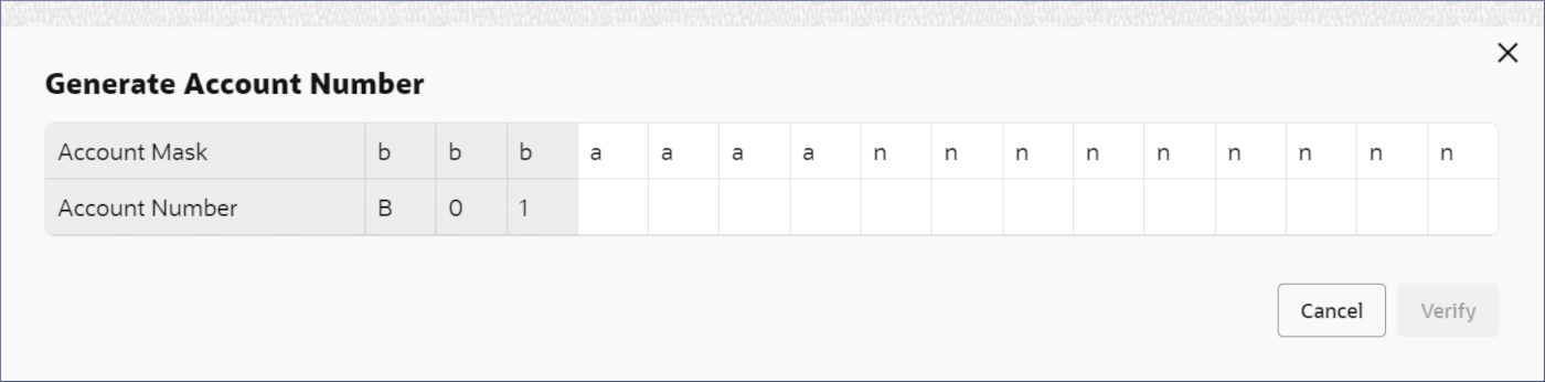 The Account Class provides the Interest Details, Account Status, GL Reporting Details, and Account MIS details. Select the appropriate account class that supports the features you require in the account. For example, to include interests and charges in the account, ensure that the account class supports the interest and charges feature. - Click Generate.The Generate Account Number dialog displays.