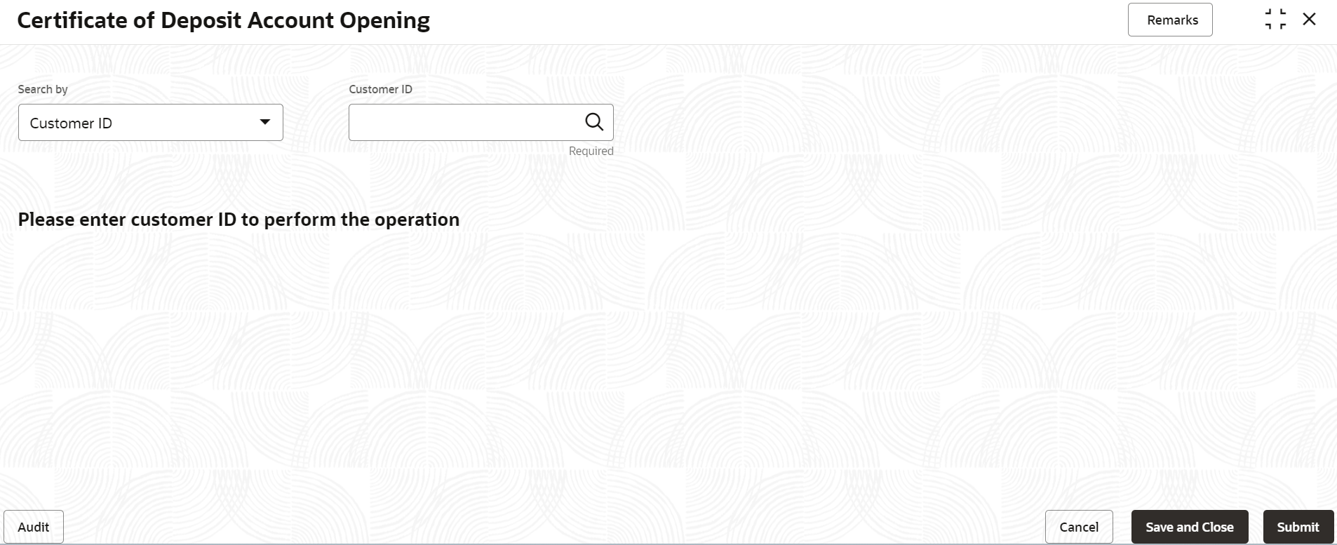select the product to create a new deposit account.The Certificate of Deposit Account Opening is displayed with the Deposit Details fields to specify the details.