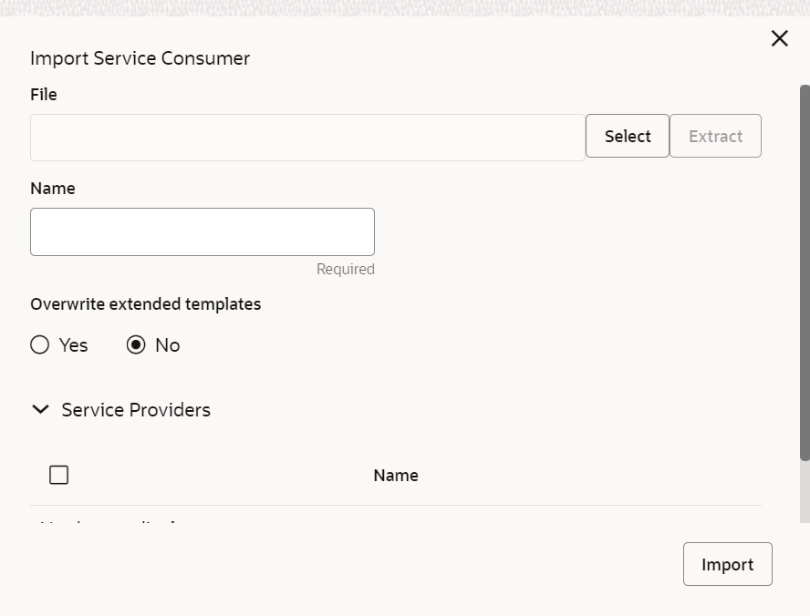 Oracle Banking Routing Hub is responsible for the handling of API calls between Oracle Banking Branch and external systems (FLEXCUBE Universal Banking in case of Relationship Pricing calls). The configuration templates for Oracle Banking Routing Hub are provided along with the product releases and need to be imported through the Service Consumers screen.